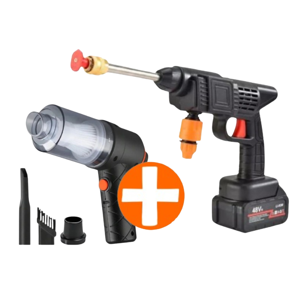 Mantén tu carro y tu hogar impecables con el combo de Hidrolavadora portátil de alta presión 48V y Mini Aspiradora recargable. Diseñada para el uso diario en Colombia, esta hidrolavadora inalámbrica con 2 baterías de litio 4000 mAh ofrece potencia y autonomía para lavar autos, motos, fachadas y jardines sin depender de una toma de agua directa.